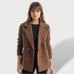 O Blazer Amora combina a alfaiataria clássica com o conforto moderno. O seu design estruturado de dupla botonadura e mangas de ponto às riscas cria uma peça versátil e sofisticada. Perfeito para usar no trabalho ou com jeans num look mais casual, acrescenta um toque chique sem esforço em qualquer ocasião.