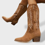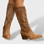 Botas Cowboy em Camurça para Mulher com Tacão Bloco