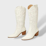 Botas Cowboy Femininas Altas Bordadas – Tacão Grosso