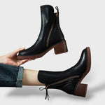 Estes botins com fecho lateral combinam estilo moderno e conforto duradouro. Projetados com um tacão quadrado que oferece estabilidade e um toque de altura, são ideais para te acompanhar durante todo o dia. O seu design versátil e o detalhe subtil na parte de trás tornam-nos o complemento perfeito tanto para looks casuais como para trajes mais elegantes.