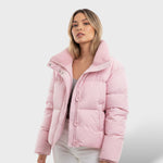 Casaco Curto Acolchoado com Gola Alta e Enchimento de Penas